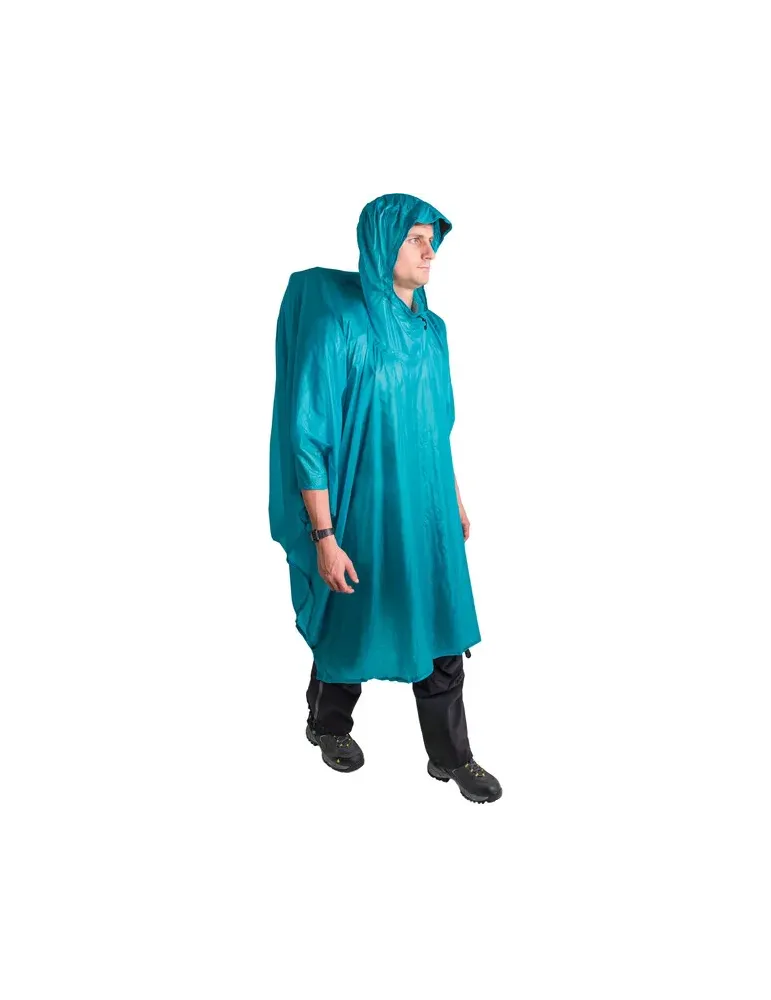 Sea To Summit Ultra-Sil Tarp-Poncho är en ultralätt poncho utrustad med en luva med skärm för att hålla regnet borta. Tryckknappar i sidorna håller ihop den när den används som poncho och utfälld och upphängd fungerar den som ett effektivt skydd mot regn när du sover under bar himmel. Som tarp rymmer den två personer, som poncho en person med eller utan ryggsäck.
