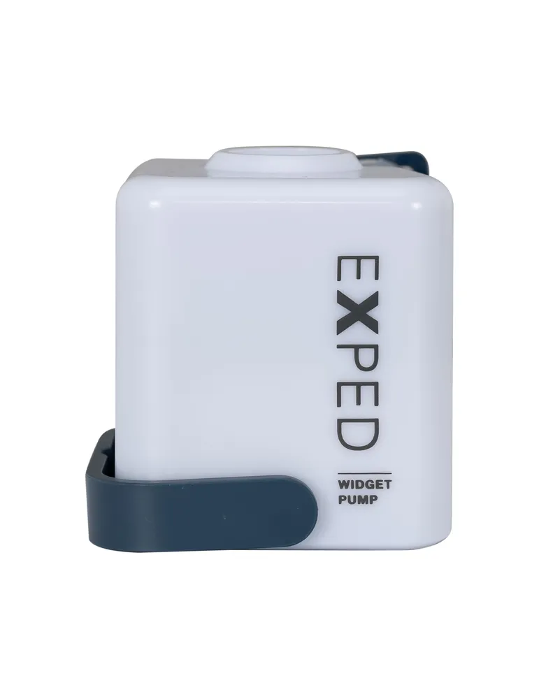 Med sin kompakta design får Widget enkelt plats i ryggsäcken och har tillräcklig kraft för att snabbt blåsa upp flera stora liggunderlag. Den är utrustad med Exped:s universella ventiladapter, vilket gör den kompatibel med de flesta liggunderlag på marknaden. För användning under sena timmar erbjuder Widget ett tyst läge som blåser långsammare men utan att störa omgivningen. Utöver pumpfunktionen fungerar den som en campinglampa med tre ljusnivåer och kan lysa upp lägret i upp till 72 timmar när den är fulladdad. Det inbyggda handtaget möjliggör enkel upphängning i tältet eller på en gren.