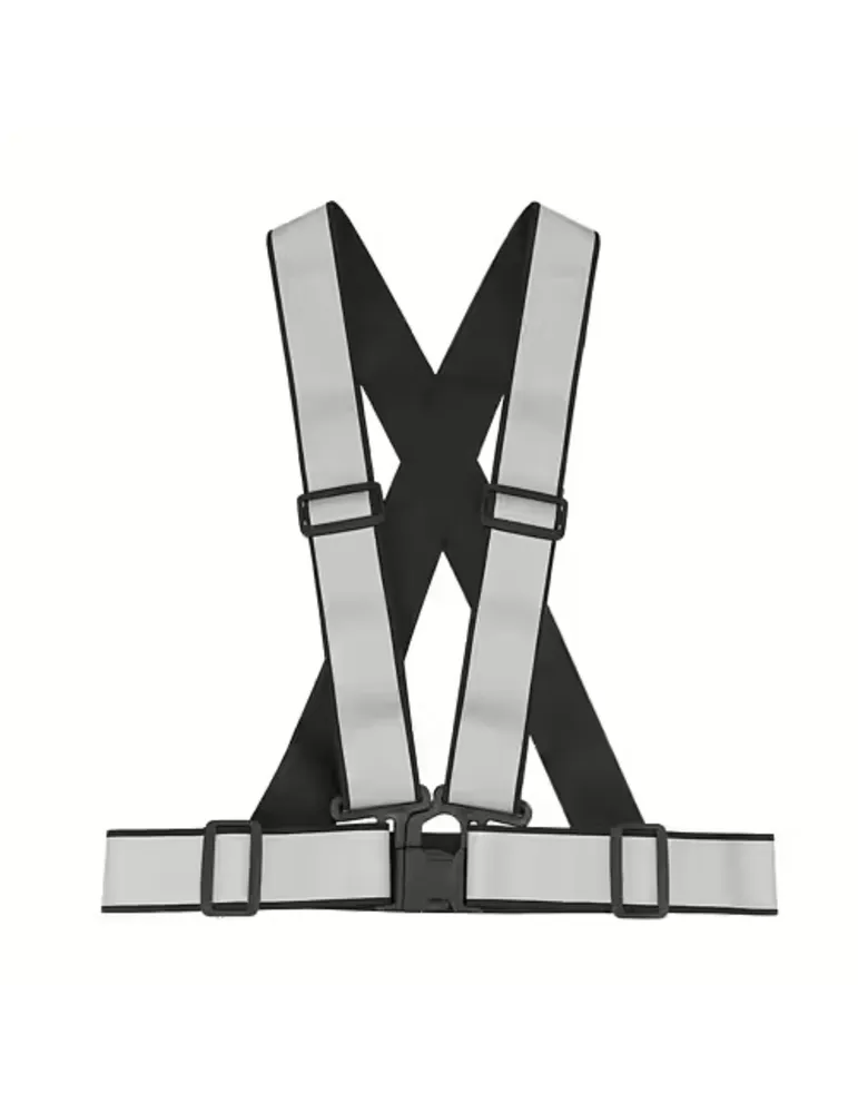 Förbättra synligheten då mörkret faller med denna reflexsele/reflexväst. Reflexselen är idealisk när du promenerar, joggar, cyklar, kör moped/MC, rider, rastar hunden eller vistas utomhus i mörker av annan anledning. Smidig och lätt att bära. Klicka enkelt ihop spännet och justera axel- och midjeband så att selen sitter bekvämt! Lätt att anpassa efter olika ytterplagg. Tillverkad av följsamma resårband för en perfekt passform. Svart med reflexband. Synlig upp till 500 m. Lätt att ta med. Bara vik ihop och lägg i fickan. Kan även träs över ryggsäck. One size passar "alla" storlekar (XS-XXXL