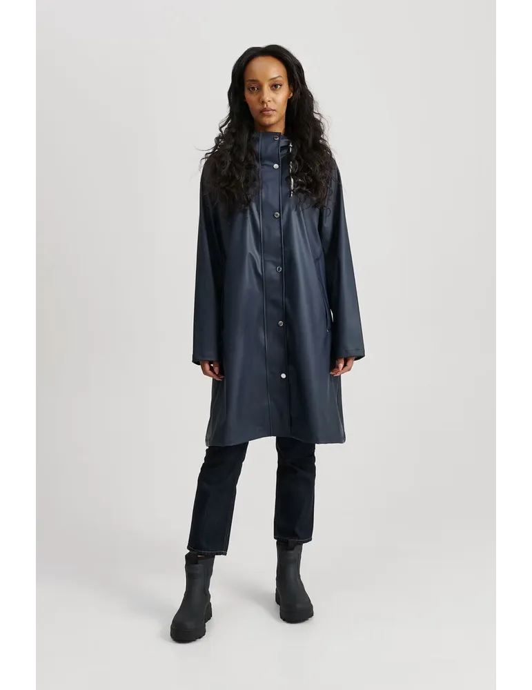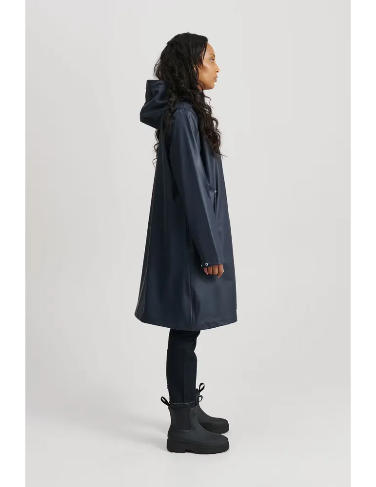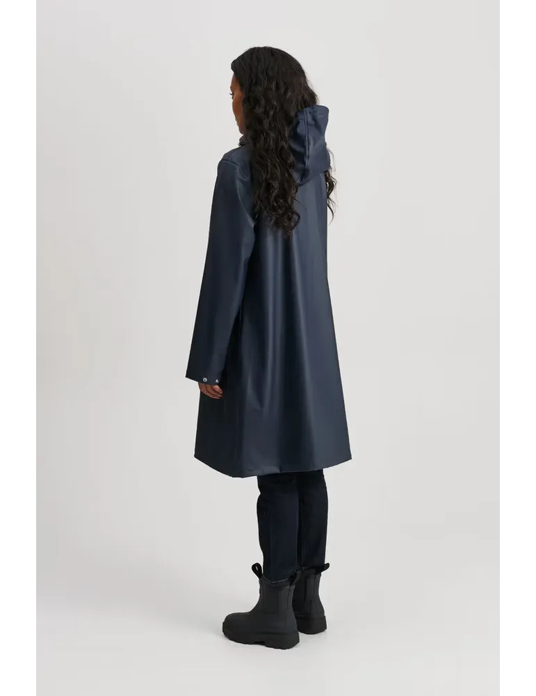 Den här A-formade regnjackan är perfekt för att hålla dig torr och snygg i regnet. Den har en klassisk passform och är gjord av ett hållbart, vattentätt material. Regnjackan har också en fastsydd huva och en andningsbar design, vilket gör den bekväm att bära även i varmt väder.