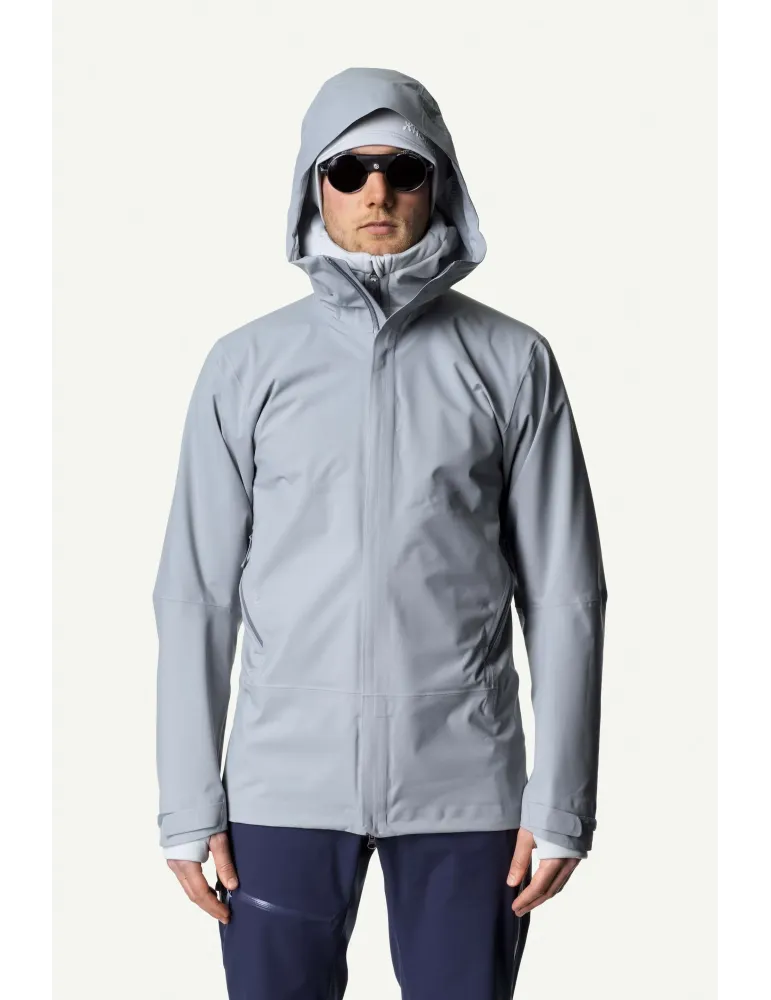 Supple, soft and silent stretch hardshell. Waterproof, breathable, lightweight and stowable 2.5-layer hardshell fabric.