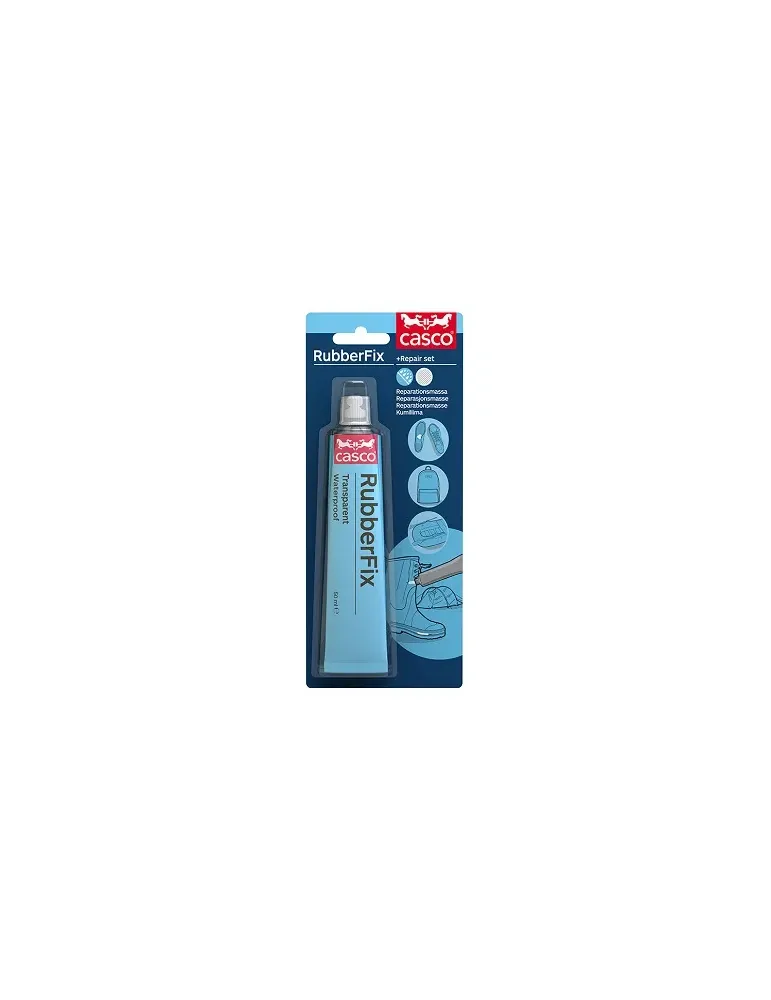 RubberFix är en pasta som man använder för att reparera produkter, ge skydd samt göra dem täta för väta. Perfekt för att limma eller fogfylla gummi, textil, trä, läder samt olika former av syntetmaterial. Man kan se den som en "Första Hjälpen" när det kommer till skosulor, stövlar och luftmadrasser.