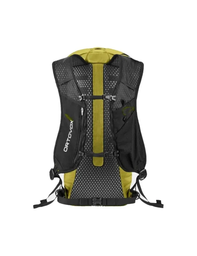 Ortovox beskriver själv denna 20 liter ryggsäck till längre skidturer: "The lightweight back system impresses with breathable contact pads that ensure permanenent circulation of air and excellent wear comfort, ergonomically designed shoulder straps and a wide hip bälte..."