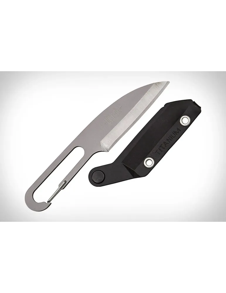 Vargo Titainium "Wharn-Clip" kniv. Titankonstruktion i ett stycke med integrerad fästklämma. 5 3/8" totalt. 2 5/8" wharncliffe blad. Svart Kydex bladhölje. Hängkardad.