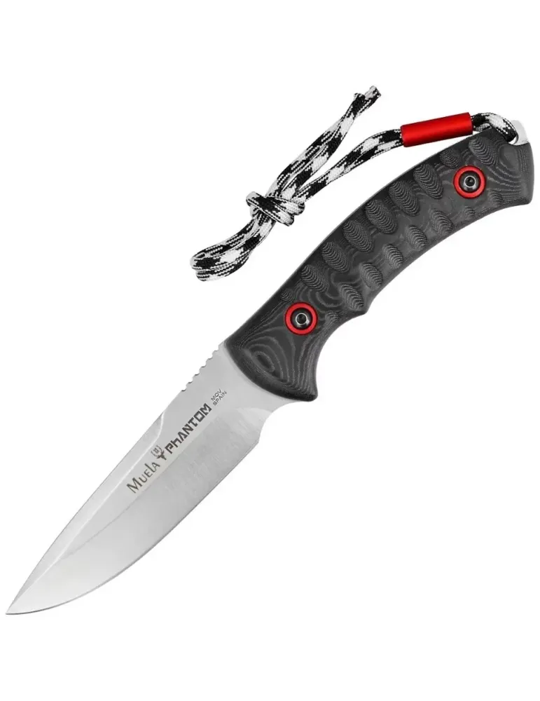 Phantom Black Micarta, Satin en stor jakt/taktisk kniv med full tangkonstruktion i X50CrMoV15 stål. Stålet har genomgått CRYO-T kryogen behandling, även känd som stålfrysning. Detta förbättrar bladets hårdhet och styrka. Handtag av micarta, med röda accenter!
