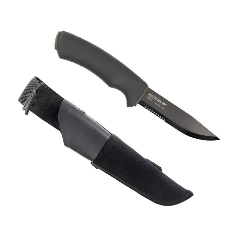 Moraknivs Tactical SRT är en regäl kniv med ett blad framtaget i rostfritt stål och har en DLC-beläggning för att ge ett extra skydd mot rost och andra skador bladet kan få. Bladet är även utrustat med en tandad del som underlättar en hel del när du ska skära igenom rep och andra fibermaterial. Som dess syskon Tactical så har även denna kniv en slipad bladrygg för att kunna använda dem tillsammans med ett tändstål för att tända eld i ditt stormkök eller en brasa.
