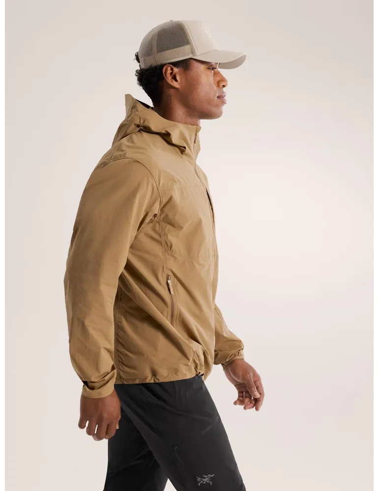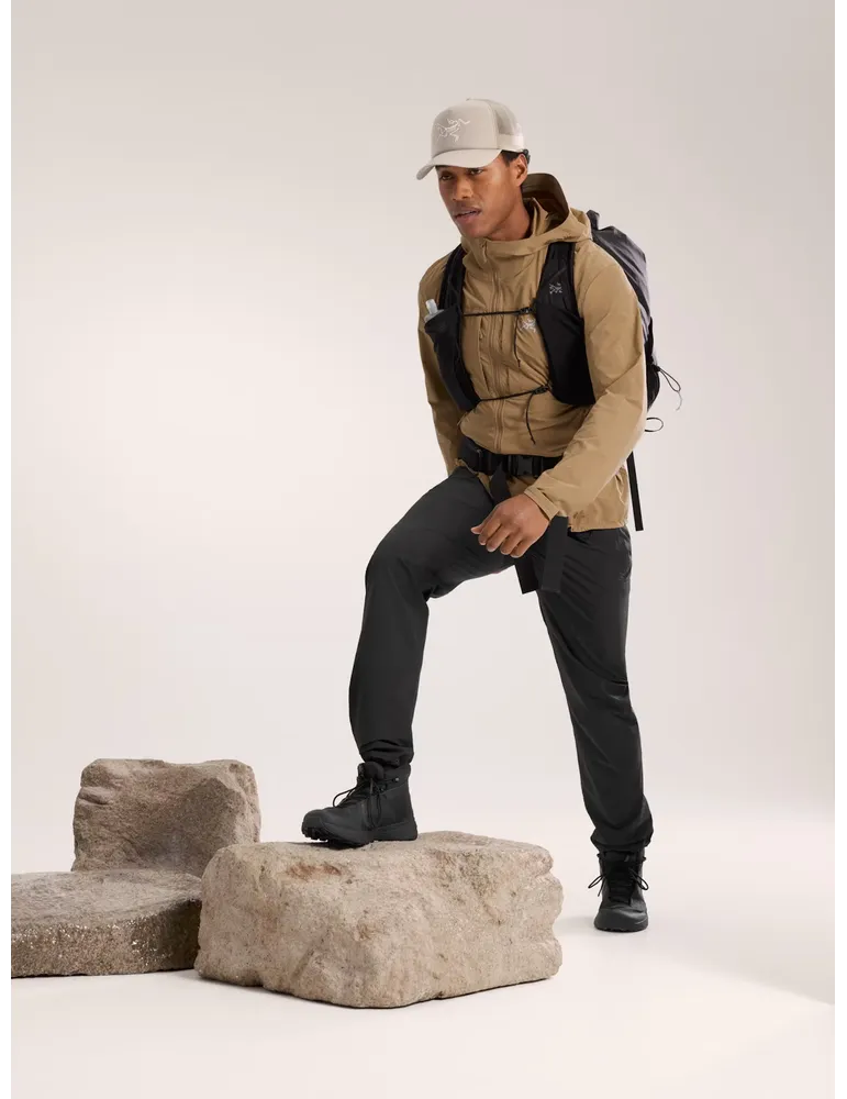 Jackan har en tight passform (slim fit) och andas mycket bra vid outdooraktiviteter med hög puls. Under ärmarna finns kilar som bidrar till att du kan lyfta armarna över huvudet utan att jackan åker upp. Tyget består av delvis återvunnet material.