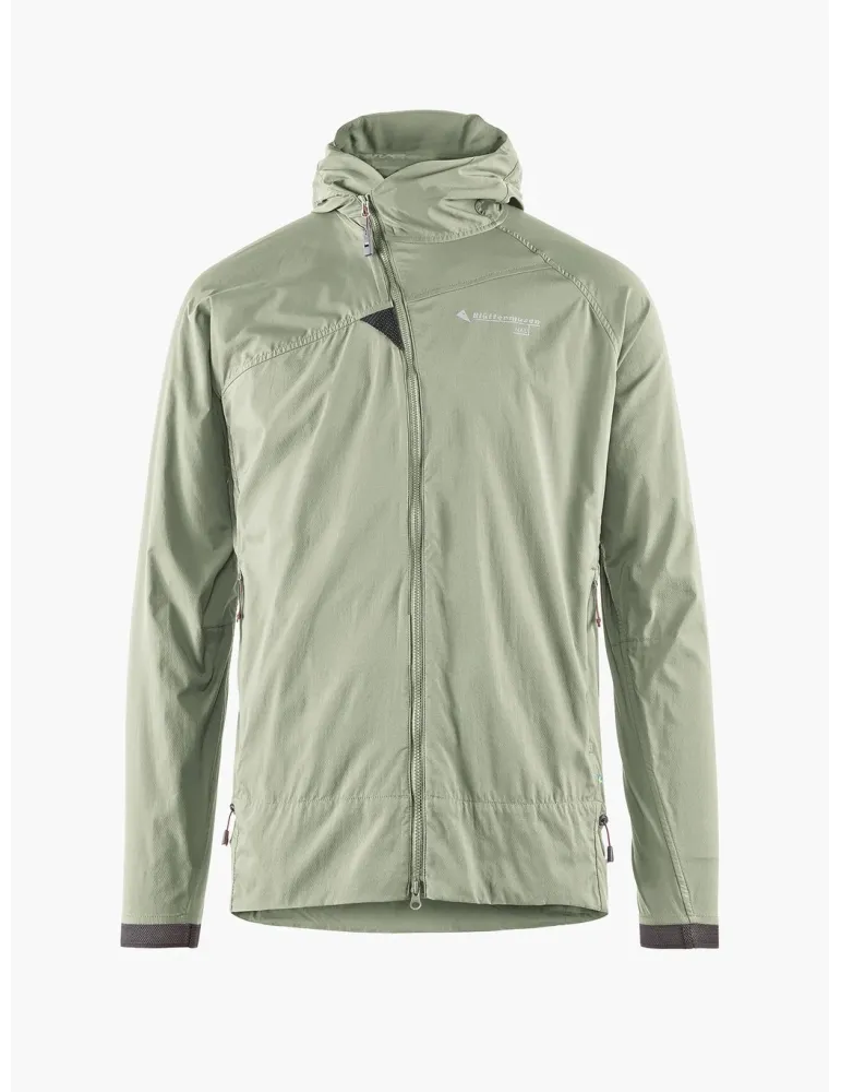Jackan är vindtät med seleanpassade fickor, elastiska ärmslut och justerbar fåll för anpassad passform. Den har även blixtlås med visselpipa, reflexer fram och bak och tight luva med ett mjukt foder i nacken. Jackan är tyst, flexibel och lättvikt, tillverkad av bluesign®-godkänd Ultramid® Bio-Mass-balanserad polyamid.
