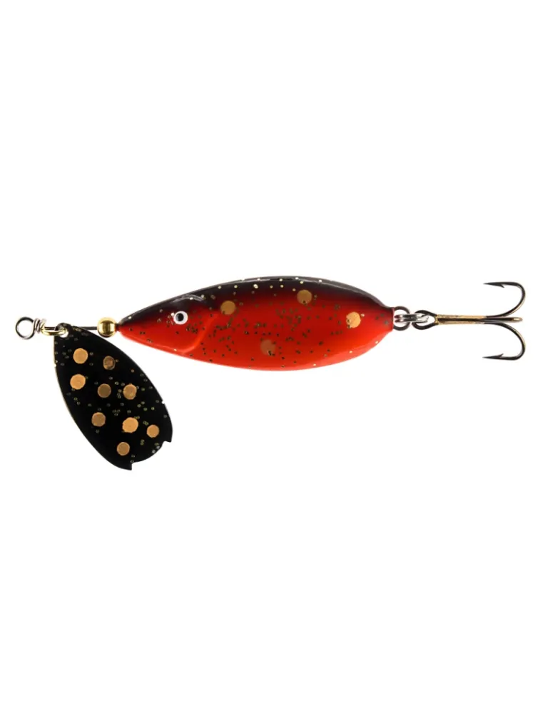 Utan tvekan en av de absolut bästa spinnarna på marknaden idag  Den unika konstruktionen gör att kroppen inte roterar vid hemtagning och därmed tvinnas inte linan vilket kan vara ett problem vid fiske med spinnare.Lottospinnaren är en riktig värsting för öring, regnbåge och röding men den fungerar lika bra för annat fiske som tex abborre och gädda.