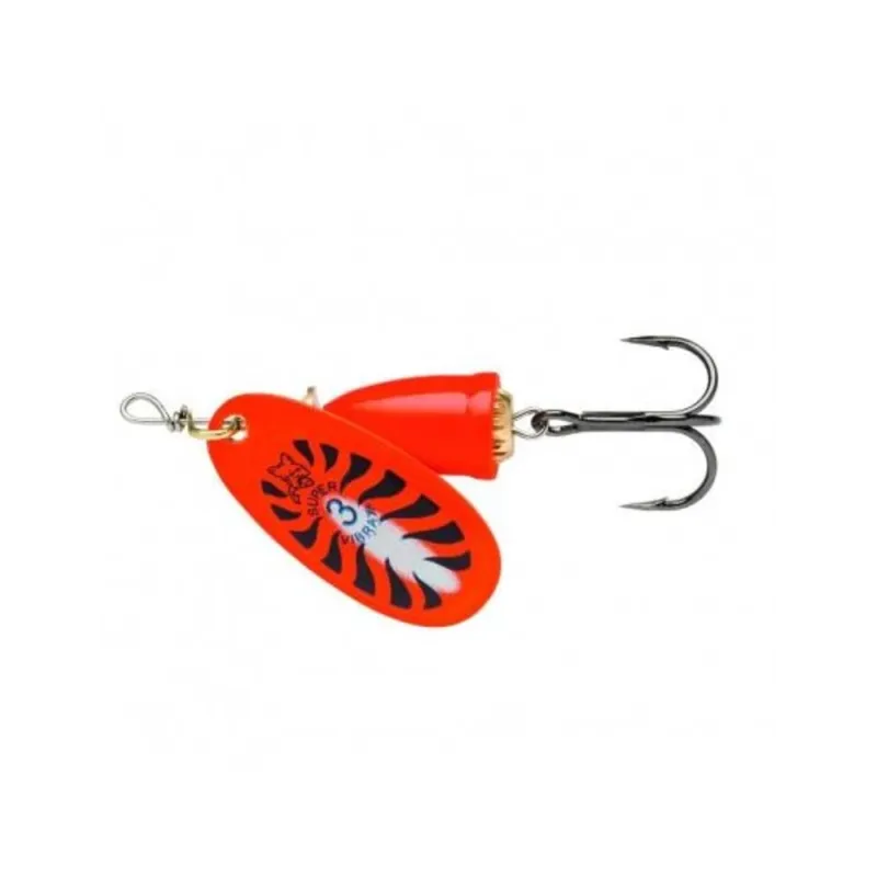 Blue Fox Vibrax® Fluorescent är en spinnare med en patenterad tvådelad kropp som avger lågfrekventa ljudvibrationer som lockar till sig fiskarna, samtidigt som den ser till att fiskelinan inte tvistar ihop sig.
