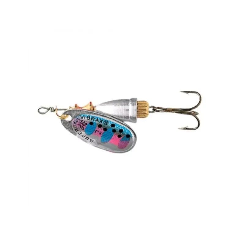 Blue Fox Vibrax® Fluorescent är en spinnare med en patenterad tvådelad kropp som avger lågfrekventa ljudvibrationer som lockar till sig fiskarna, samtidigt som den ser till att fiskelinan inte tvistar ihop sig.
