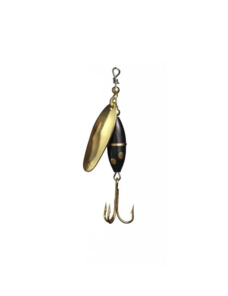 Panter är försedd med guldkrok och kroppen är svart med gula prickar. Med sin kompakta kropp är Panter prick mycket lättkastad. MYRANS unika bygel gör att spinnaren går i gång redan från första sekund. Spinner jämt vid både långsam och snabb invevning. En mycket gångbar spinnare för all rovfisk.