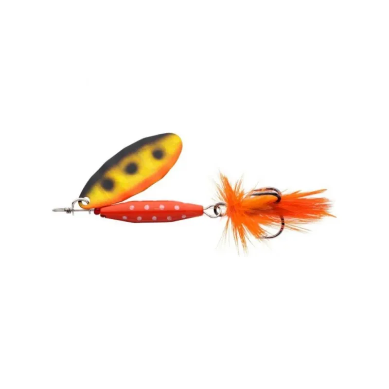Abu Reflex Red en av världens mest sålda spinnare, som ända sedan 1951 lurat fler öringar, regnbågar, abborrar och andra fiskar än det går att räkna till. Skeden snurrar lockande i både låg och hög fart.
