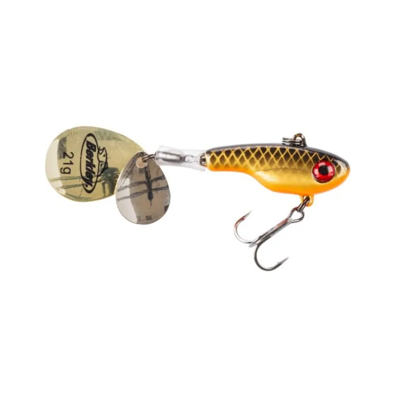 Den stora skeden skickar ut lockande signaler till fiskarna medan den lilla gör att hela betet vibrerar och vickar vilket gör det till ett ruggigt effektivt abborrbete. Trekroken är Berkleys egna supervassa Fusion19.