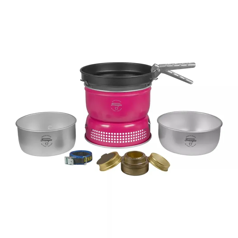 Information 25 serien innehåller de lite större kärlen, som lämpar sig för sällskap på 3-4 personer. Det är utmärkta familjekök, med rymliga kokkärl, en vidare stekpanna och större kaffepanna. Med hållarna i uppfällt läge kan köket kombineras med större lägerkittlar ur det övriga Trangiasortimentet.