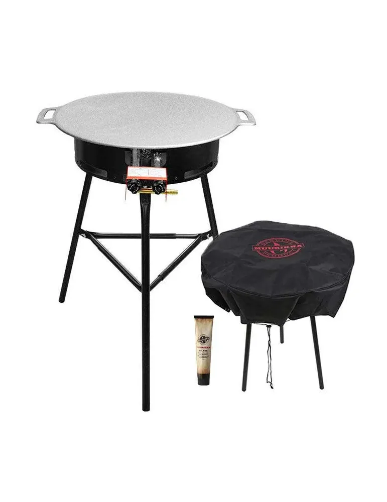 I paketet så ingår originalet, Muurikka Stekhäll 58 cm, som ger dig möjlighet att tillaga mat för en större grupp människor, utomhus. Muurikka Gasolbrännaren D-400, stekfettet Muurikka Silava, Muurikka Skyddspåse 58 cm samt Muurikka Överdrag för SET 48/58/Paella.