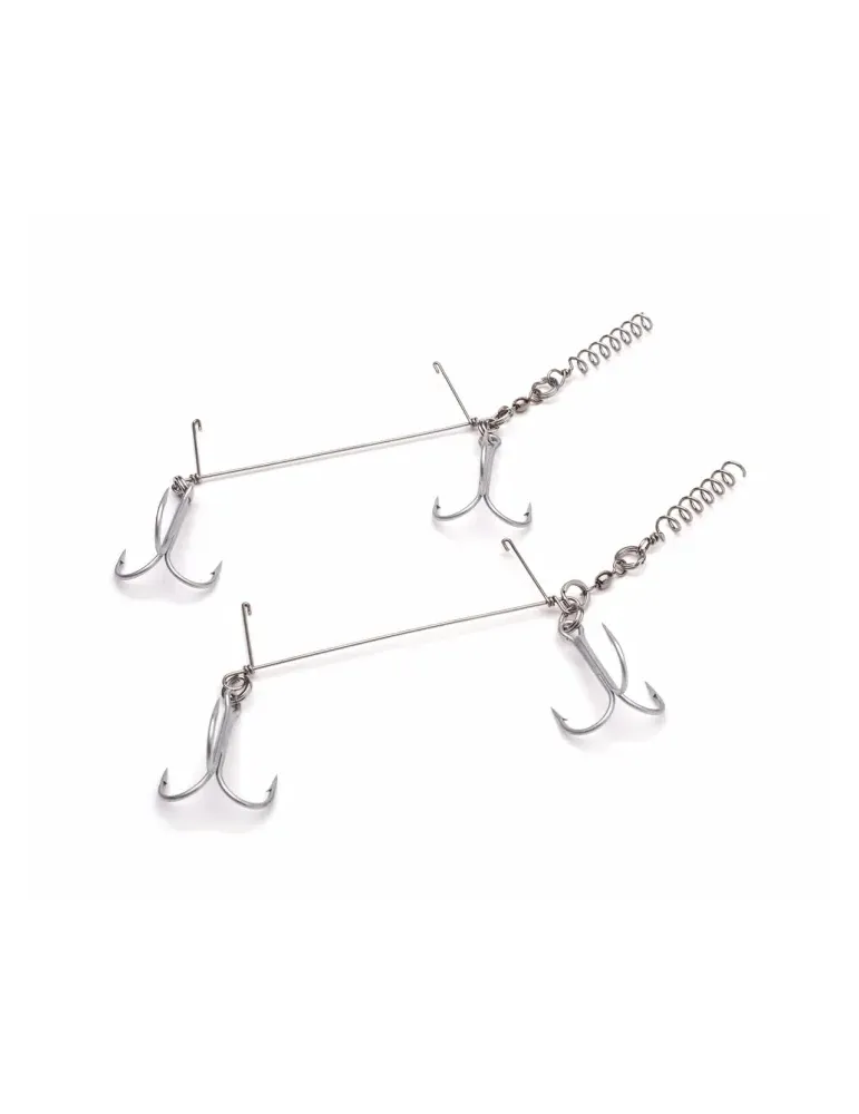 Svartzonkers egna Stingertackel som kommer i 3st olika storlekar för att passa hans utbud av beten, 1,1mm hård rostfri tråd och VMC 8650 Permasteel 3-krok bådar för lång hållbarhet. Dessa stingers passar givetvis till alla typer av gäddjiggar. Otroligt prisvärda, 2-pack.