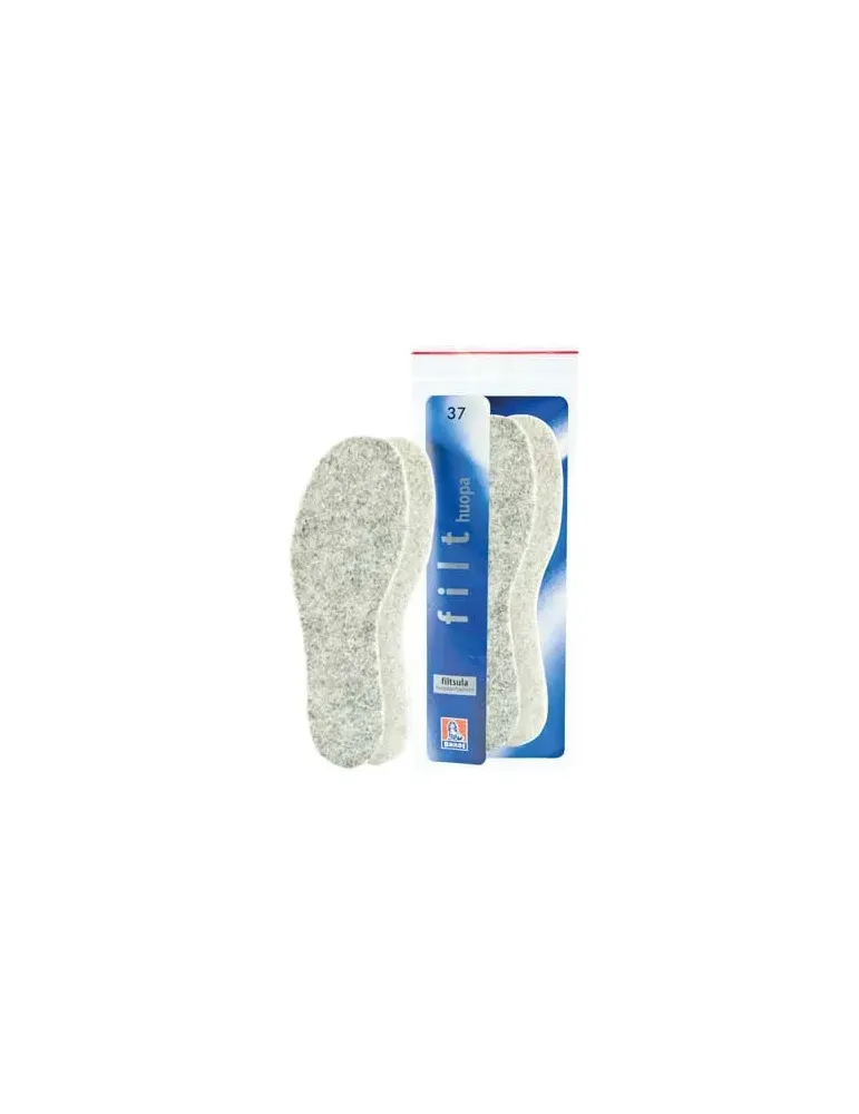 Varm och behaglig filtsula tillverkad av äkta ull. Passar alla typer av skor och kan användas hela året. Undersidan är räfflad med antiglid. Säljs i par.
