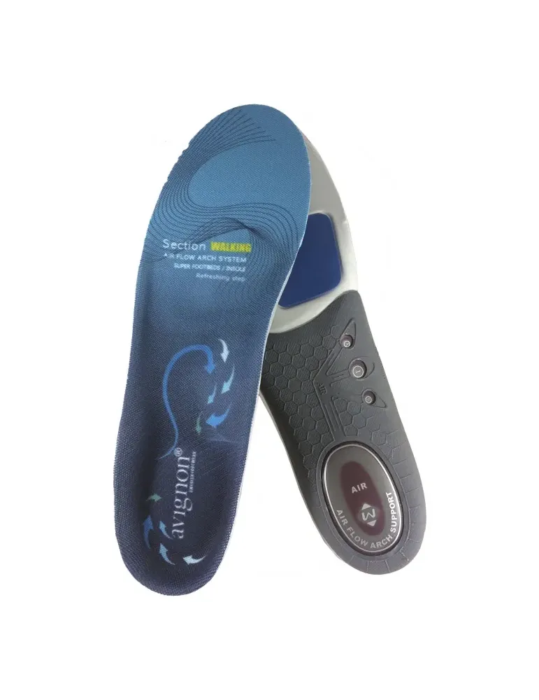 Air-Flow är en helt unik iläggssula med inbyggda luftkuddar för att ge dynamisk stötdämpning och avlastning för hela kroppen samt anpassa stödet för just din hålfot. Air-Flow är endast 4,5 mm tunn och fungerar utmärkt i de flesta typer av skor. Tänk på att den bygger på nästan en storlek och därför fungerar bäst i skor med en löstagbar innersula. För vardagsskorna finns tunnare varianter av Air-Flown på 3,5 och 2,5 mm.