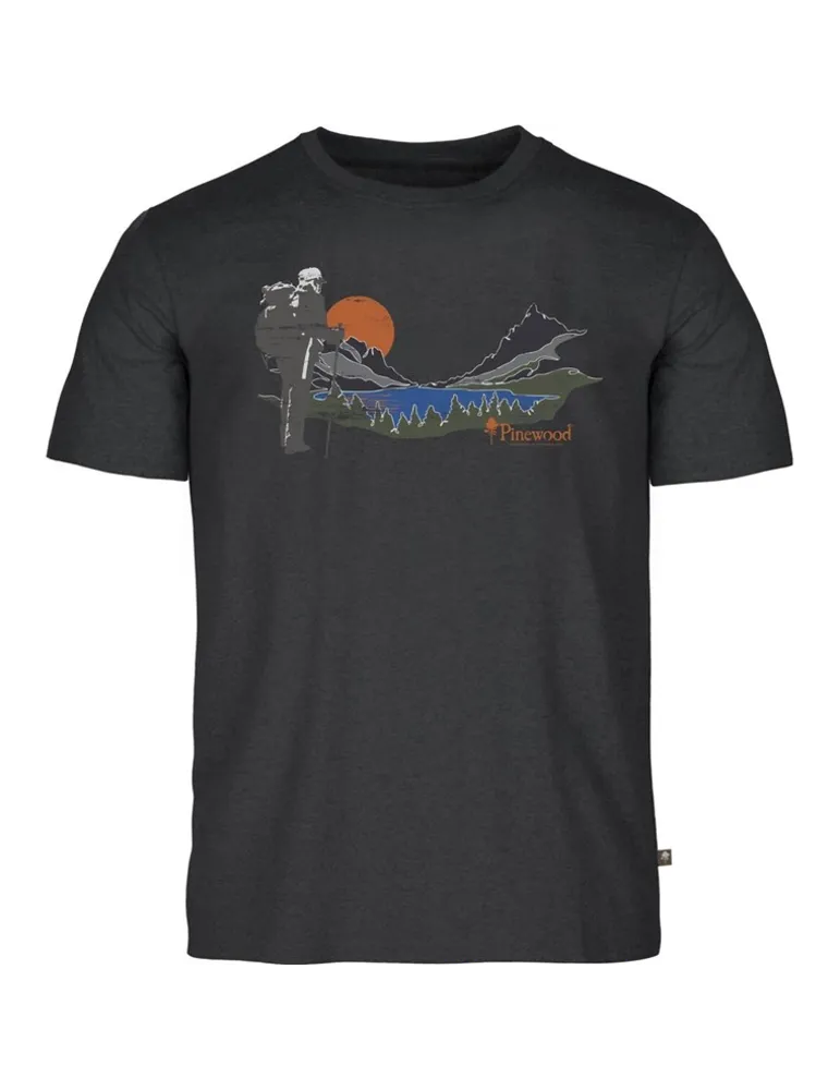 Mjuk t-shirt för herr gjord av 100% återvunnet material från bomull och polyester med tryck på framsidan. Då tyget får sin färg enligt det återvunna materialet behövs ingen ny färgningsprocess vilket gör att vi sparar mycket vatten och energi i processen, och resulterar i ett miljövänligt och snyggt, melerat tyg.