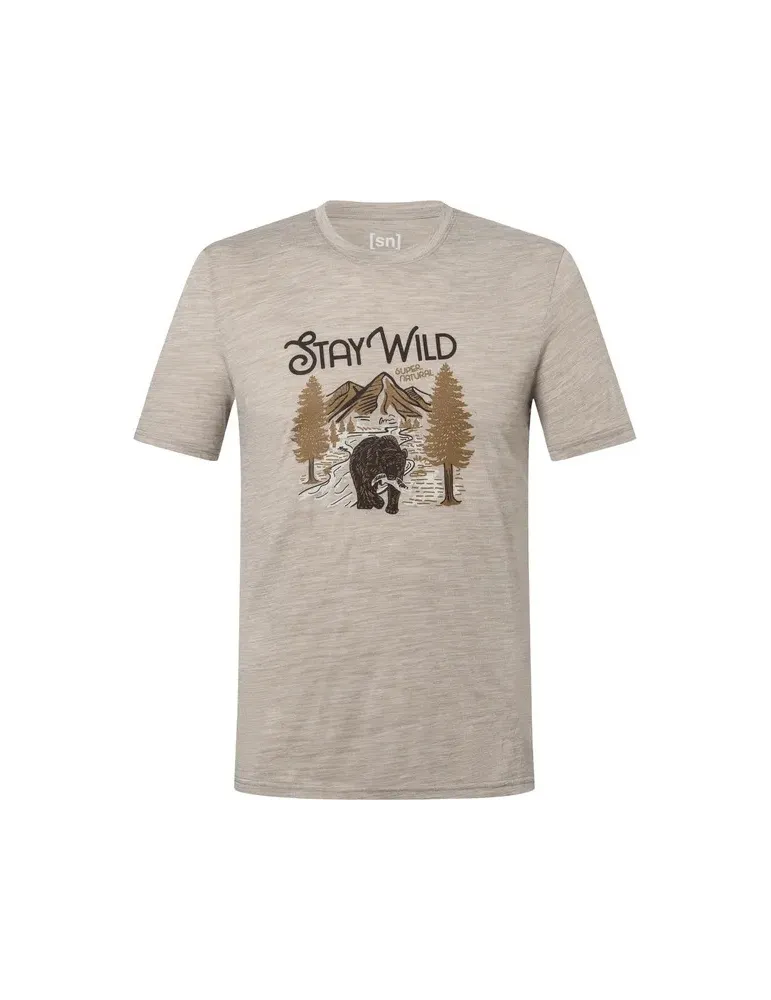 Tillverkad av Advanced Wool 140g fiber, en blandning av 50 % merinoull och 50 % polyester, är den idealisk för olika sport- och fritidsaktiviteter. Det moderna trycket av ett utomhuslandskap på t-shirten tilltalar kärleken till naturen och äventyrsandan. Den vanliga passformen garanterar bekväm användning, oavsett om det gäller vandring, yoga eller bara vardagsli