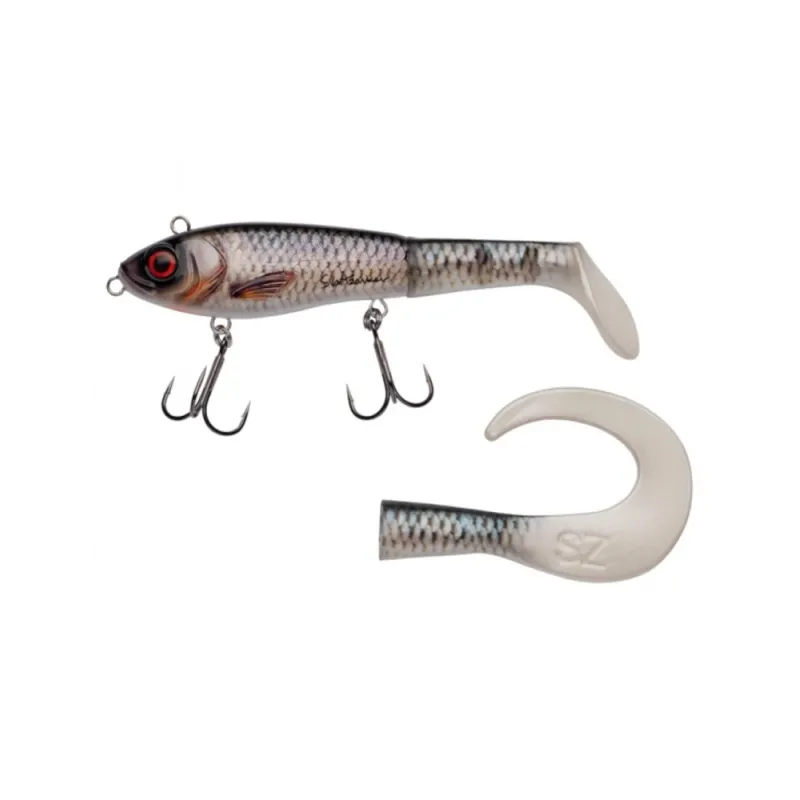 McHybrid är ett effektivt och unikt hybridbete där två världar förenas i en – mjukt och hårt på samma gång. Den nya modellen har förbättrats på flera punkter. Med sin ovala, breda kropp får den en realistisk fiskprofil och en lunkande, oregelbunden simrörelse som attraherar alla stora rovfiskar. Fäst beteslåset i den övre öglan så simmar betet djupare med ett bredare rörelsemönster. Med den nedre öglan får det en mjukare, grundare gång. Vill du ha en supergrund och ännu mjukare presentation: byt ut paddelstjärten till den vanliga tailen som medföljer. Betet är blyfritt och bestyckat med supervassa Fusion19-krokar.