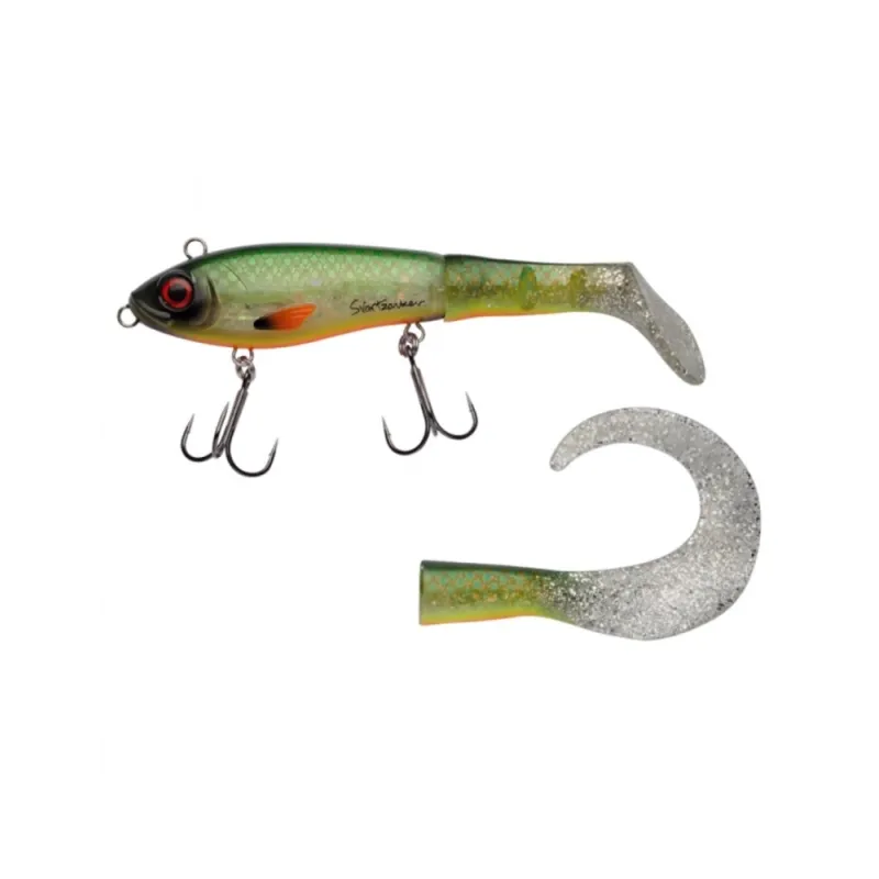 McHybrid är ett effektivt och unikt hybridbete där två världar förenas i en – mjukt och hårt på samma gång. Den nya modellen har förbättrats på flera punkter. Med sin ovala, breda kropp får den en realistisk fiskprofil och en lunkande, oregelbunden simrörelse som attraherar alla stora rovfiskar. Fäst beteslåset i den övre öglan så simmar betet djupare med ett bredare rörelsemönster. Med den nedre öglan får det en mjukare, grundare gång. Vill du ha en supergrund och ännu mjukare presentation: byt ut paddelstjärten till den vanliga tailen som medföljer. Betet är blyfritt och bestyckat med supervassa Fusion19-krokar.