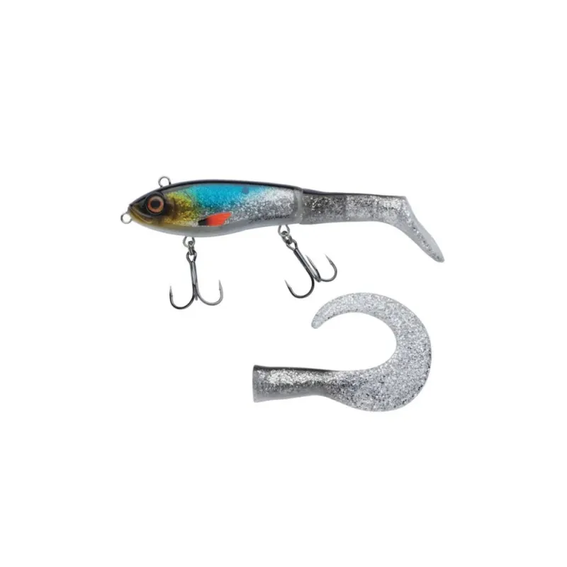 McHybrid är ett effektivt och unikt hybridbete där två världar förenas i en – mjukt och hårt på samma gång. Den nya modellen har förbättrats på flera punkter. Med sin ovala, breda kropp får den en realistisk fiskprofil och en lunkande, oregelbunden simrörelse som attraherar alla stora rovfiskar. Fäst beteslåset i den övre öglan så simmar betet djupare med ett bredare rörelsemönster. Med den nedre öglan får det en mjukare, grundare gång. Vill du ha en supergrund och ännu mjukare presentation: byt ut paddelstjärten till den vanliga tailen som medföljer. Betet är blyfritt och bestyckat med supervassa Fusion19-krokar.