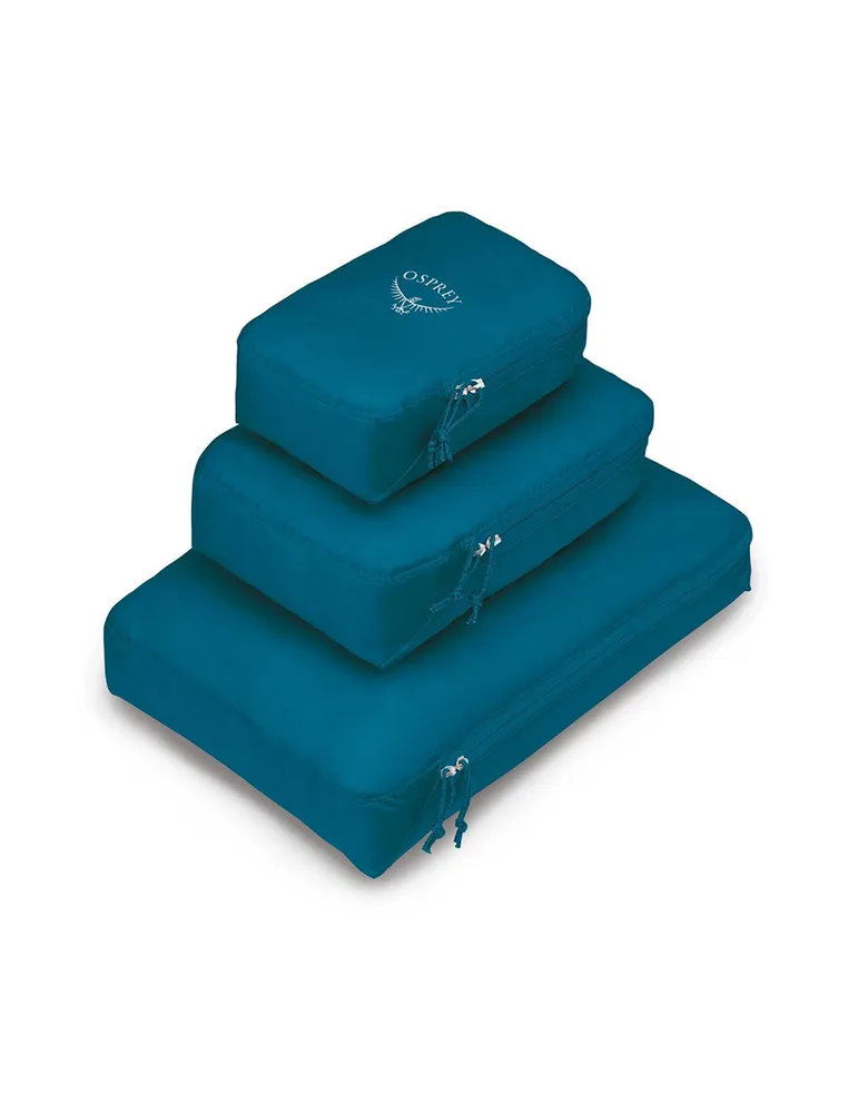 Packkuber i silikonbehandlat nylonmaterialet som glider enkelt i och ur din väska, och den stora öppningen med dragkedja innebär att du kan fylla dem till max. Det här setet innehåller packkuber i storlekarna liten, mellan och stor.
