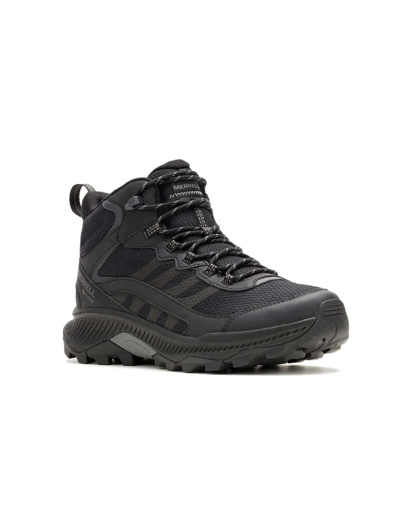 The Speed Strike 2 Mid GORE-TEX provides the comfort and weather protection you want of a waterproof hiking boot, while also delivering a faster, more athletic style than traditional hikers. Packed with 100% recycled materials from the laces and webbing to the mesh lining and footbed cover, as well as a 50% recycled removable EVA foam footbed, all atop of a Merrell sticky rubber outsole with durable traction that grips when and where you need it.