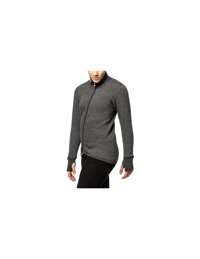 Woolpowers Full Zip Jacket 400 är en ulltröja med en extra tjock polokrage för att ge extra värme samt en full dragkedja på framsidan för att göra den till ett smidigt vardagsplagg. För att ge ökad komfort och för att se till att det inte glipar mellan byxorna och tröjan så har Woolpower förlängt ryggdelen.