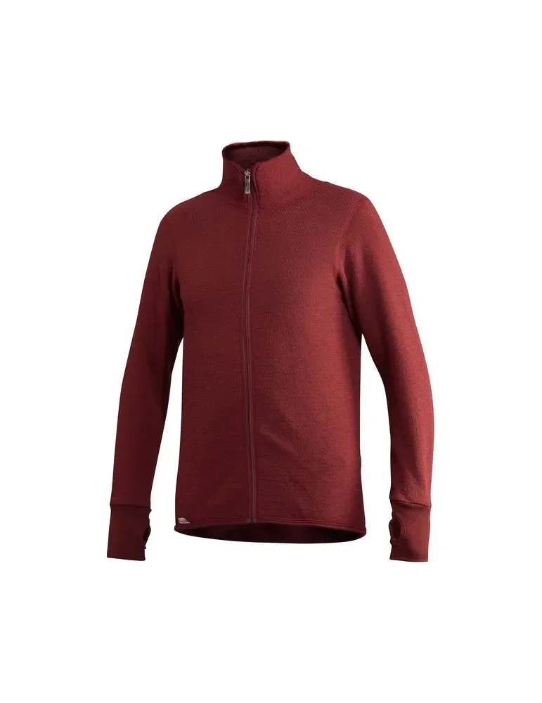 Woolpowers Full Zip Jacket 400 är en ulltröja med en extra tjock polokrage för att ge extra värme samt en full dragkedja på framsidan för att göra den till ett smidigt vardagsplagg. För att ge ökad komfort och för att se till att det inte glipar mellan byxorna och tröjan så har Woolpower förlängt ryggdelen.