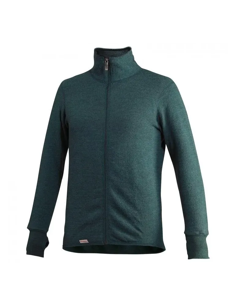Woolpowers Full Zip Jacket 400 är en ulltröja med en extra tjock polokrage för att ge extra värme samt en full dragkedja på framsidan för att göra den till ett smidigt vardagsplagg. För att ge ökad komfort och för att se till att det inte glipar mellan byxorna och tröjan så har Woolpower förlängt ryggdelen.