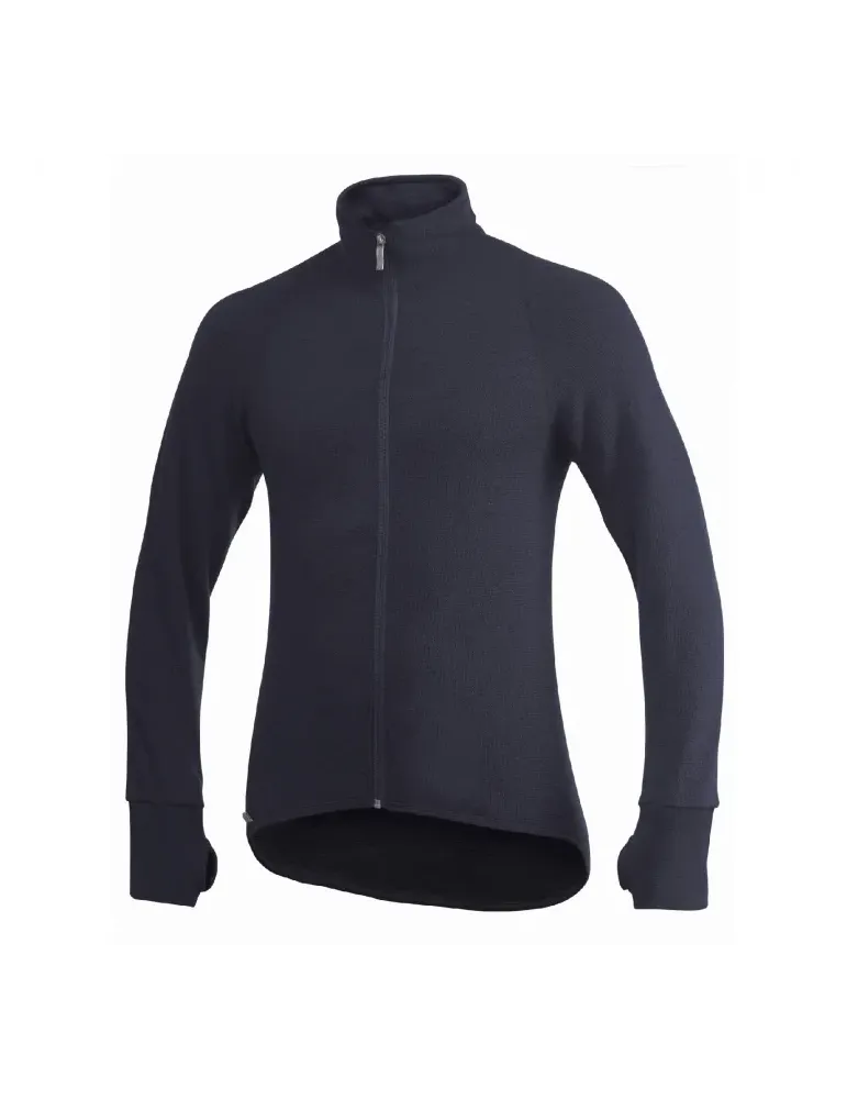 Woolpowers Full Zip Jacket 400 är en ulltröja med en extra tjock polokrage för att ge extra värme samt en full dragkedja på framsidan för att göra den till ett smidigt vardagsplagg. För att ge ökad komfort och för att se till att det inte glipar mellan byxorna och tröjan så har Woolpower förlängt ryggdelen.
