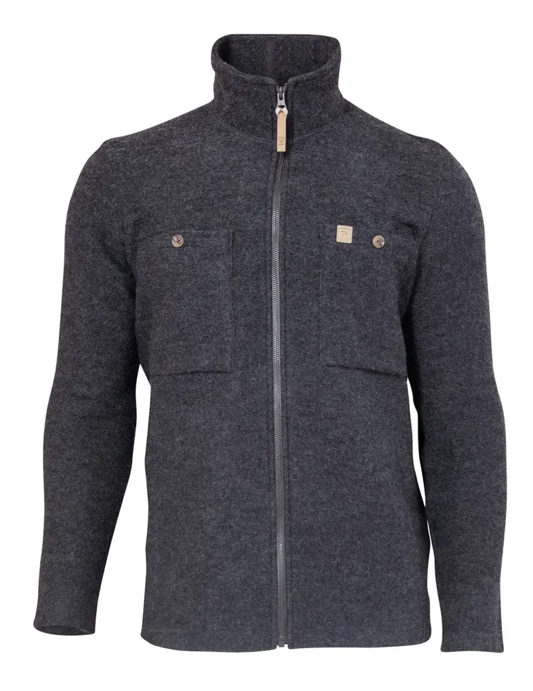 Men's GY Mastunga från Ivanhoe är en ulljacka för herrar som har hög krage och hellång dragkedja framtill. Jackan är tillverkad i en blandning av ull och TENCEL och har stora bröstfickor med knappar som kommer från återvunnet papper. På vänstra fickan finns ett Ivanhoe-märke.