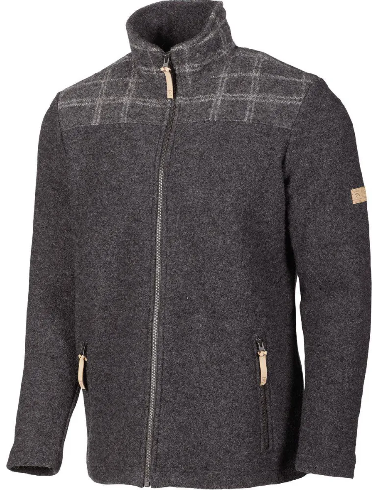 Cool wool jacket where solid material is combined with a checked jaquard knitted pattern on yoke. Full zip at front and zipped side pockets makes it a perfet jacket inbetween seasons, but also a perfect and warming layer 2 under a jacket. Knitted in 100% wool, where wool is mulesingfree and yarn Bluesign®-certified.