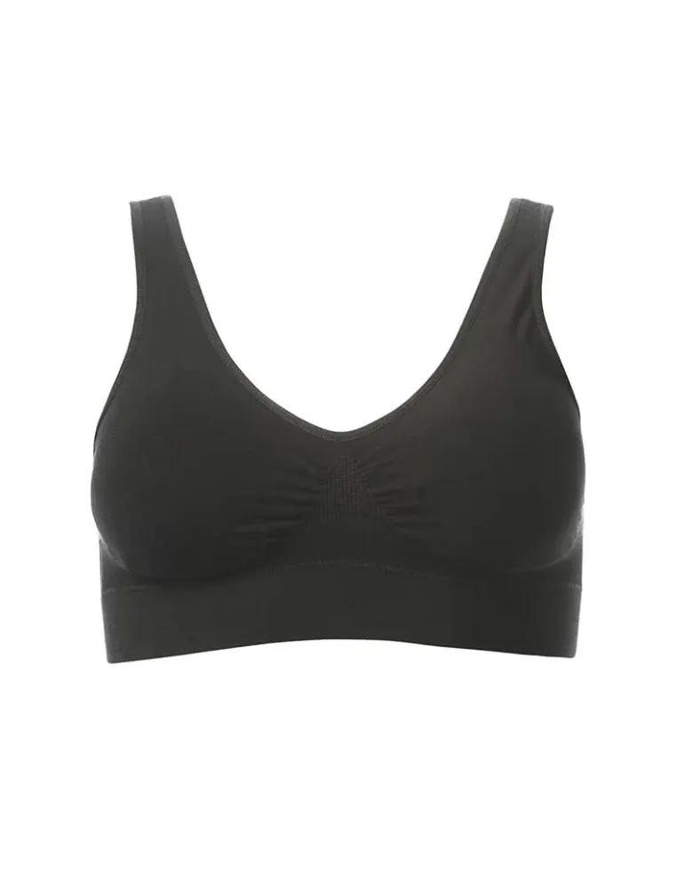 Enfärgad seamless topp med breda axelband och resår nertill, av mjuk och skön bambu. Producerad med minimalt antal sömmar för en bekvämare passform. Uttagbar padding i kuporna.