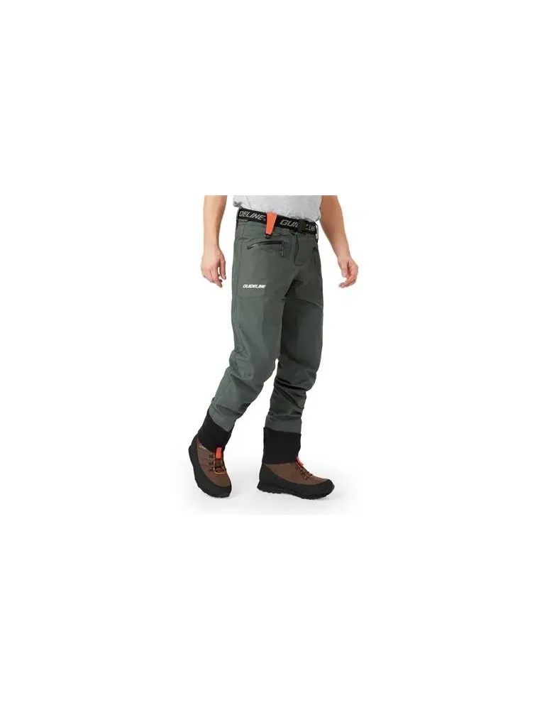 Guideline Sidewinder™ design ger bra passform med färre sömmar och förböjda ben vilket eliminerar sömmar på insidan på benen helt. Byxorna har dragkedja i fronten och vattentätt material på baksidan vilket gör dem lätta att komma i och ur. Lätta, flexibla och starka grusskydd som gör att grus och sand ej kommer in i kängorna och ger onödigt slitage på neopensockorna.