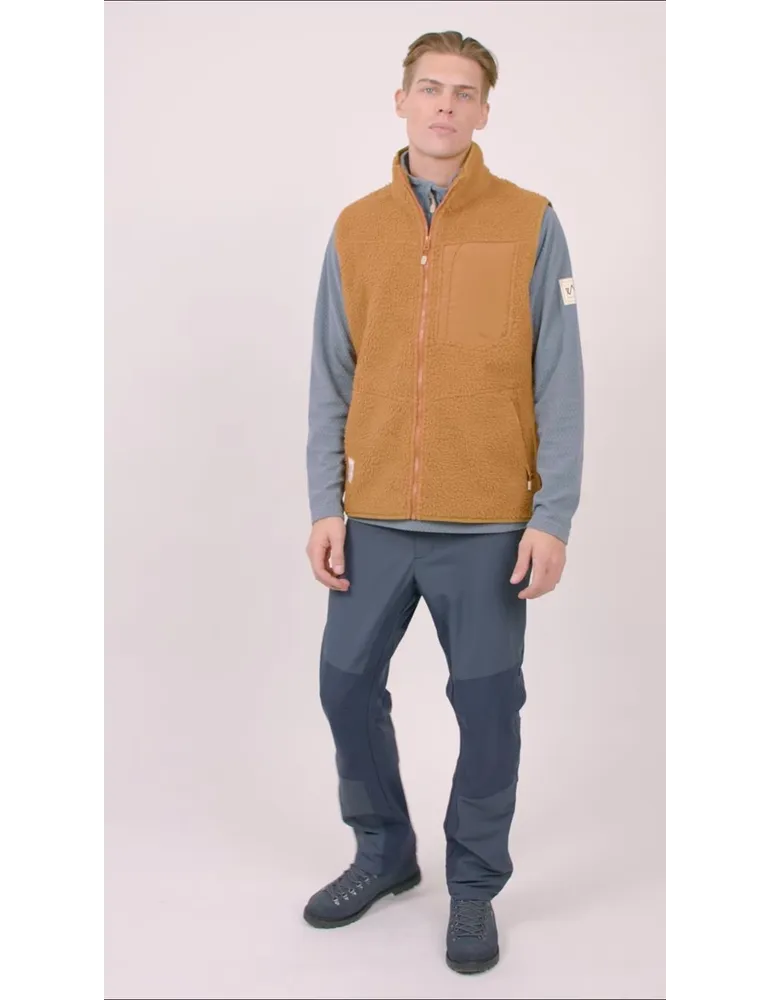 En herlig fleecevest i vindtett materiale med brystlomme i kontraststoff. Vesten har SBS glidelåser og elastikk i armhuler og nederst. En super vest som kan brukes hele året, både som mellomlag og som ytterste plagg.