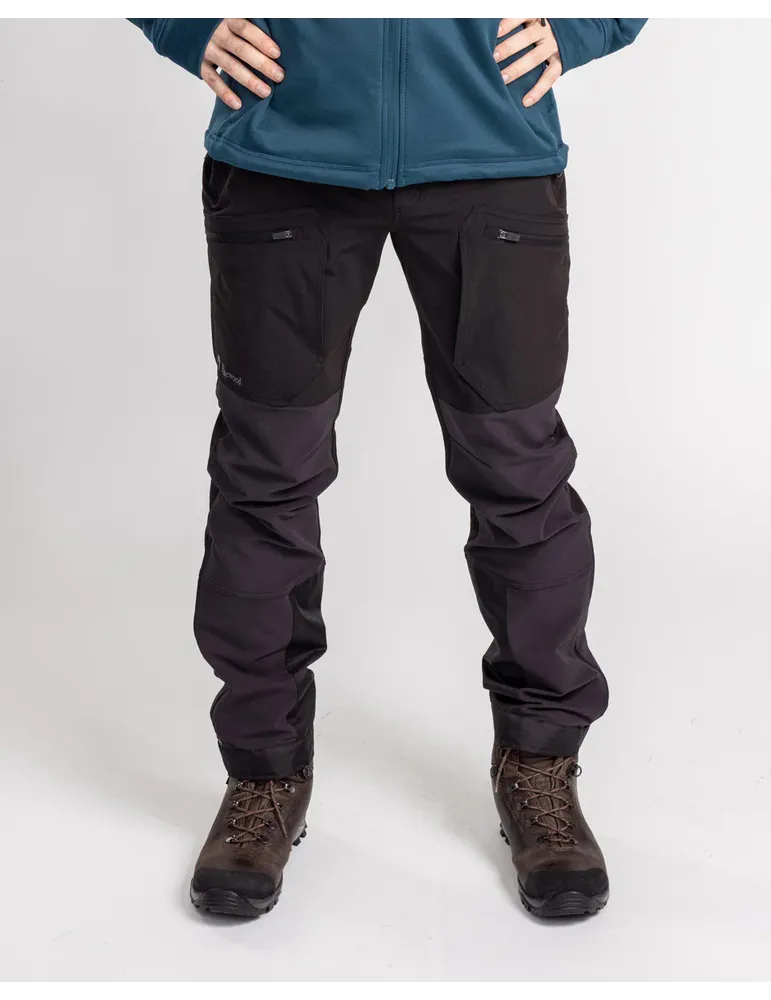 Bekväma friluftsbyxor i stretchmaterial.Tight och modern passform. Försedda med öppningsbar ventilation vid lår och benslut för extra luftgenomströmning och värmeutsläpp. Vind- och vattenavvisande, försedda med membran från knäna och nedåt samt sätet baktill. Ej tejpade sömmar. Benfickor och handfickor har dragkedja. Justerbar midja med kardborre. Justerbara benslut, samt benkrok. Behandlade med en ekologisk och fluorkarbonfri impregnering - Bionic Finish Eco för extra vattenavvisande egenskaper. En lättviktsbyxa som passar till alla typer av utomhusaktiveter t ex vandring, fiske och hundträning.