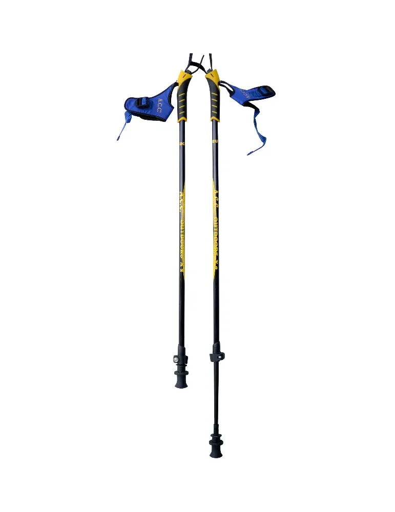 A.C.C.s X2 Teleskop 2-Delad är en lätt vandringstac i aluminium som dess namn avslöjar så är den tvådelad. Stavarna är väldigt lätta att justrera med A.C.C.s snabbkoppling, samt ett par handtag som är väldigt greppvänliga med dess SoftGrip. Handremmarna är justerbara på 3 ställen vilket gör dem optimala för att passa alla olika typer av händer.