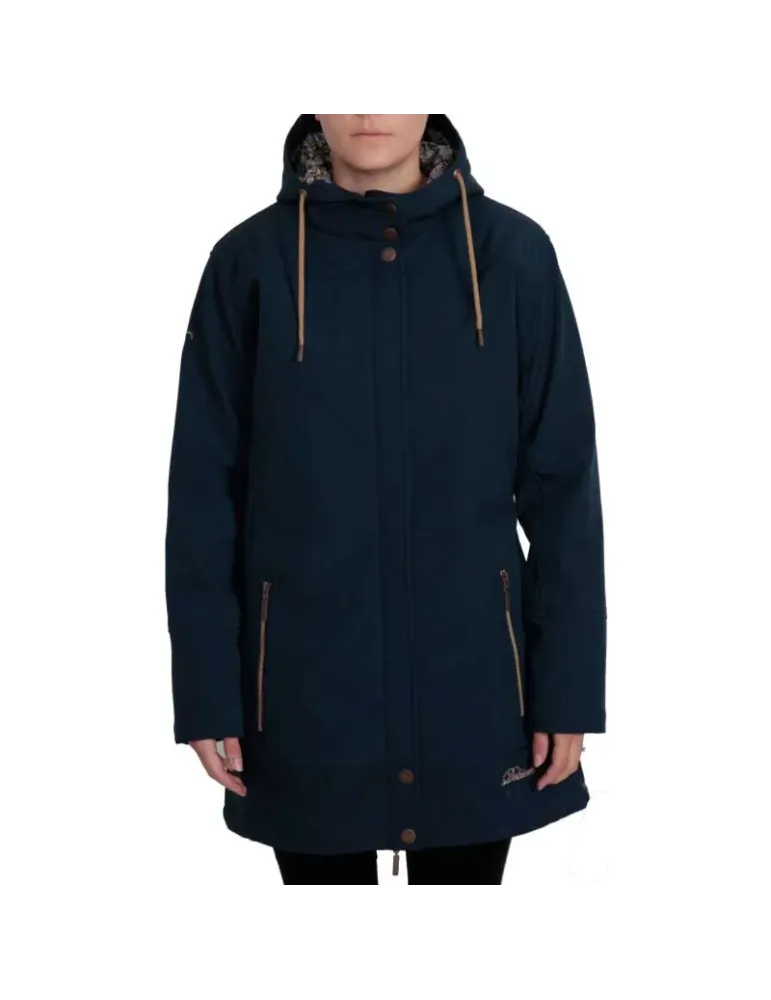 Women's Pompei Jacket är en lättfodrad damparkas från Dobsom som är gjord i ett bekvämt softshellmaterial. Ett snyggt paisleymönstrat foder i huva och överdel. Hela kappan har en insida av en mjuk och skön fleece, har ett inlaminerat membran som gör den vindtät och skyddar mot mindre regn.