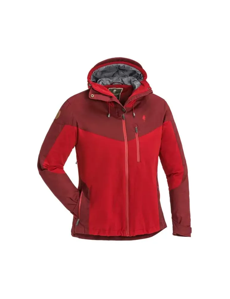 Fast, reglerbar huva med brätte. Tejpade sömmar samt vattenavvisande dragkedja. Feminint skuren. Vattenavvisande bröstficka med dragkedja. Reglerbar i nederkant. Ärmslut regleras med kardborreband.