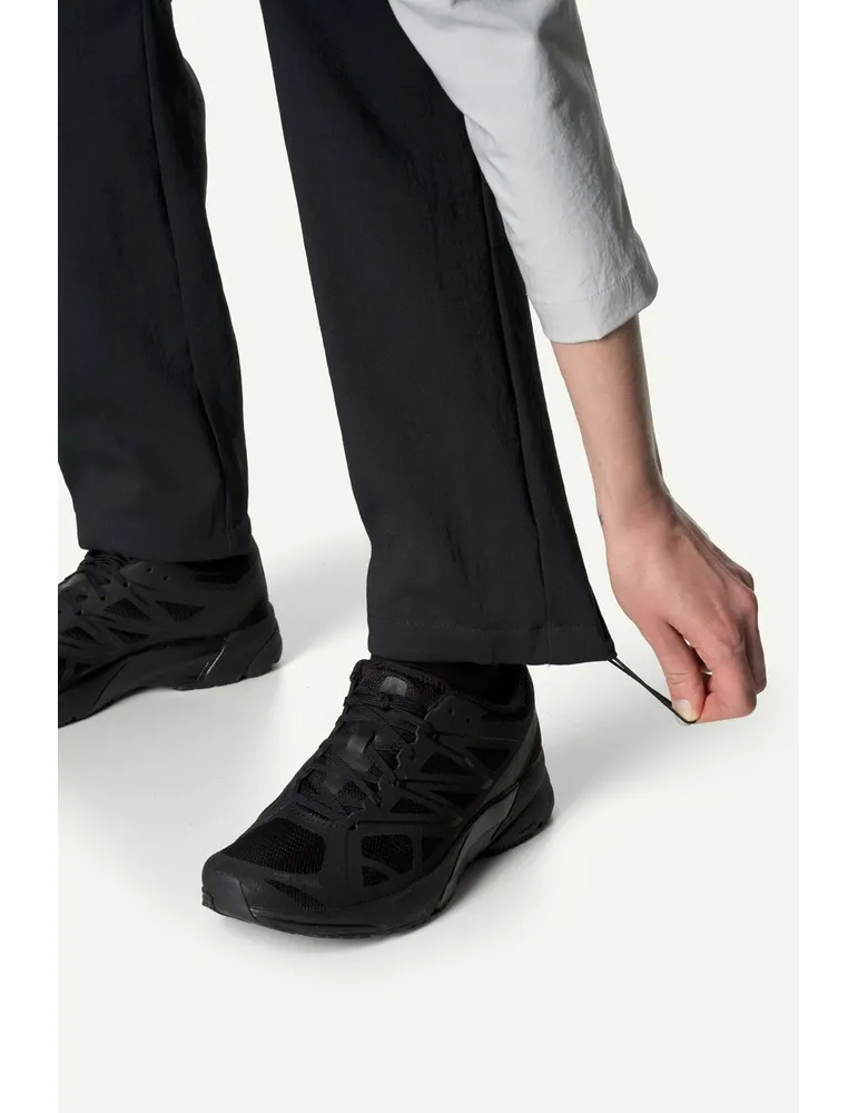 Tyget har sedan skurits i en tidlös, minimalistiskt form som passar i alla sammanhang. Om du väljer att smutsa ner dina Aerial Pants i skogen eller hålla dem rena som vardagsbyxa väljer du själv. Det lätta, slitstarka tyget hanterar båda scenarion utmärkt. Dolda justeringar i bensluten gör det enkelt att dra åt byxbenen över vandringskängor eller klätterskor.