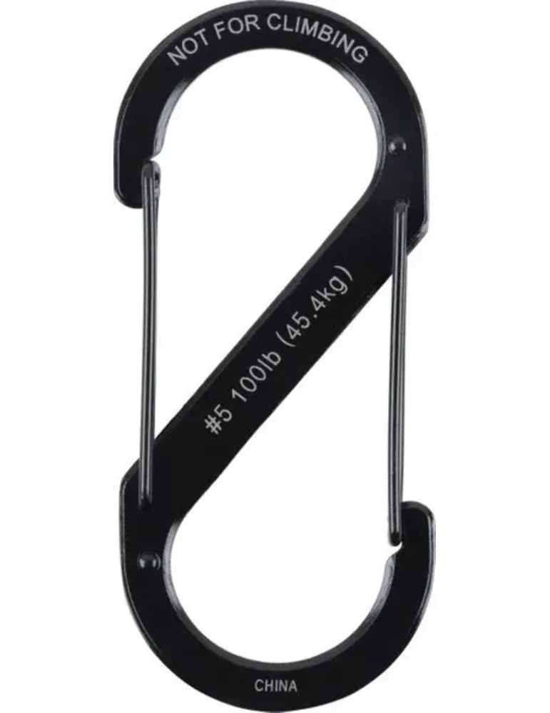 Praktisk S-formad karbin i rostfritt stål med dubbla grindar. Perfekt för att organisera och säkra utrustning med en imponerande kapacitet på upp till 45,4 kg.