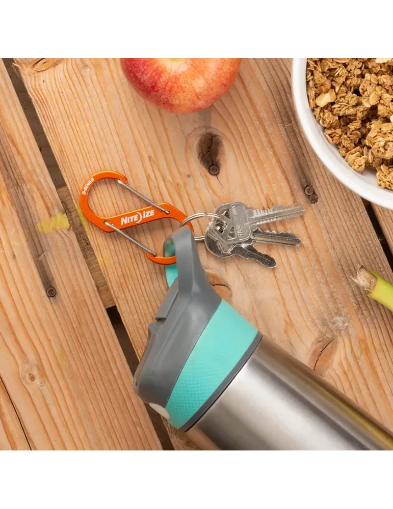 Denna praktiska S-Biner med dubbla fjäderportar i rostfritt stål, kan hålla och säkra allt, till exempel dina nycklar, vattenflaskor och redskap. Den är gjord av högkvalitativt, lätt aluminium och de dubbla grindarna möjliggör snabb och bekväm åtkomst till dina föremål. S-Biners i mindre storlek passar bra för föremål som nycklar och fästa i blixtlås, medan större storlekar kan användas för att organisera garaget och hänga eller bära stora saker, som sportutrustning. S-Biner finns i tre storlekar, #2, #3 och #4.