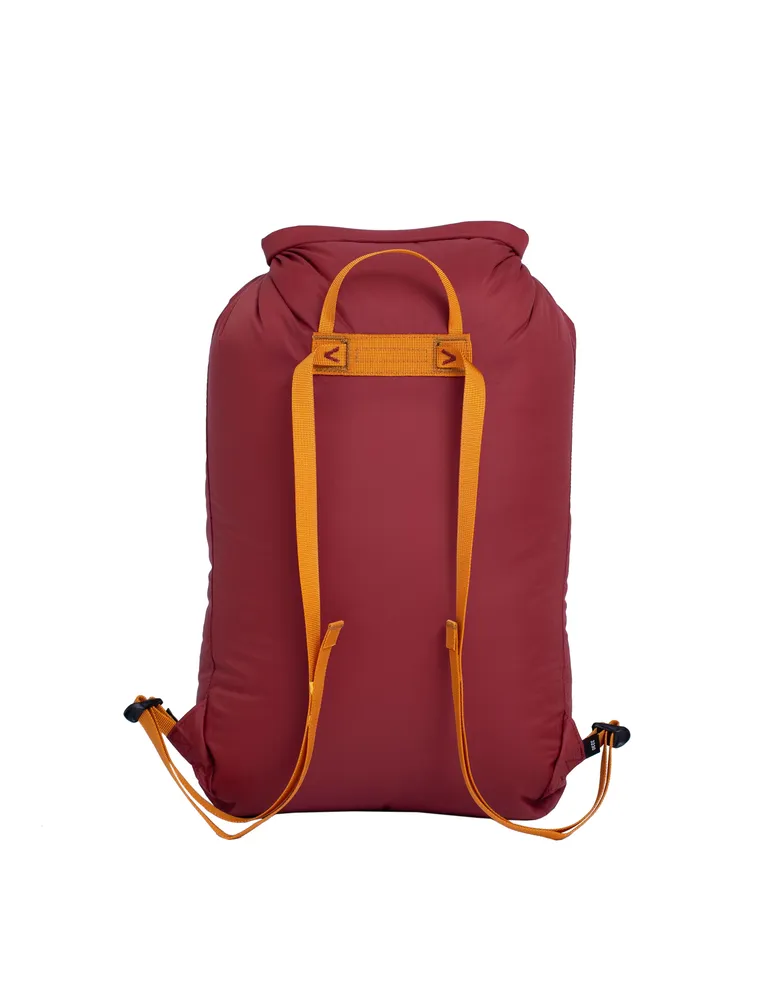 Med en enkel axelrem med en smart kardborreflik kan Splash bäras antingen som ryggsäck eller axelväska. Inuti förbättrar en vit PU-beläggning synligheten av det packade innehållet. Rulltoppsstängningen gör den också idealisk som kompressionssäck för sovsäckar.