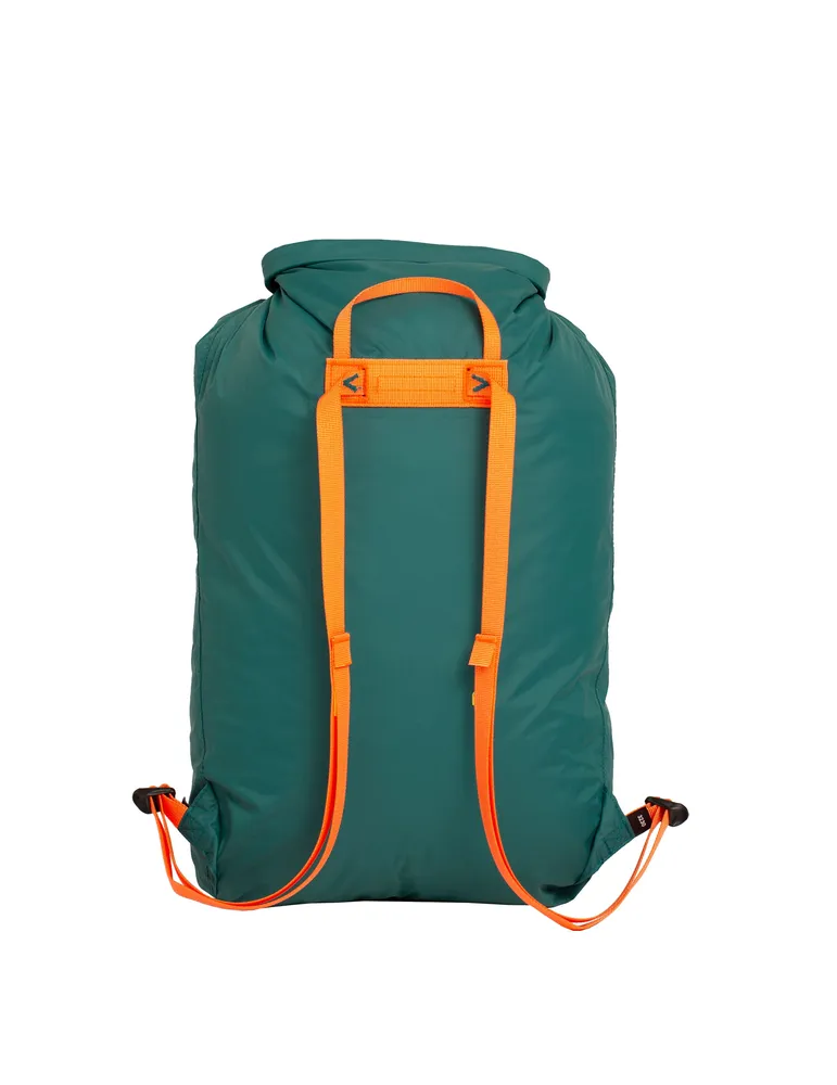 Med en enkel axelrem med en smart kardborreflik kan Splash bäras antingen som ryggsäck eller axelväska. Inuti förbättrar en vit PU-beläggning synligheten av det packade innehållet. Rulltoppsstängningen gör den också idealisk som kompressionssäck för sovsäckar.