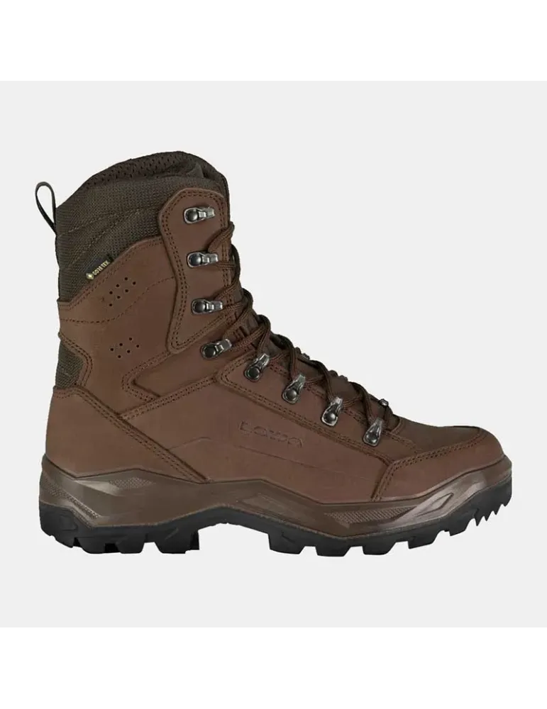 Lowa Renegade är en klassisk känga med hög komfort, låg vikt och stöd för foten. Ovandelen är gjord i nubuckläder och GORE-TEX-membranet gör skon helt vattentät. Perforeringen i fodret tillåter luft att komma in och fukt transporteras ut. Denna version är en uppdatering på den klassiska kängan, nu med högre skaft. Damversionen har en speciell läst designad för att passa den kvinnliga foten.