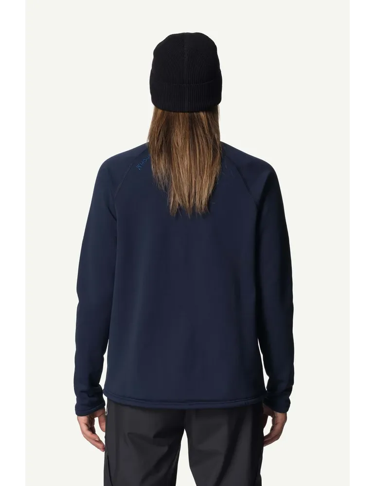 Power Up Jacket har en stadig grund att bygga på. Den klassiska Houdini Power Houdi lanserades 2003 och har inte ändrats nämnvärt sedan dess. För vår Power Up Jacket tog vi allt som var bra med Power Houdi, tog bort huvan och gjorde passformen lite mer vid och ledigare. Den ledigare passformen och designen utan huva gör det möjligt att använda den enligt lager-på-lager-principen och gör den otroligt mångsidig.